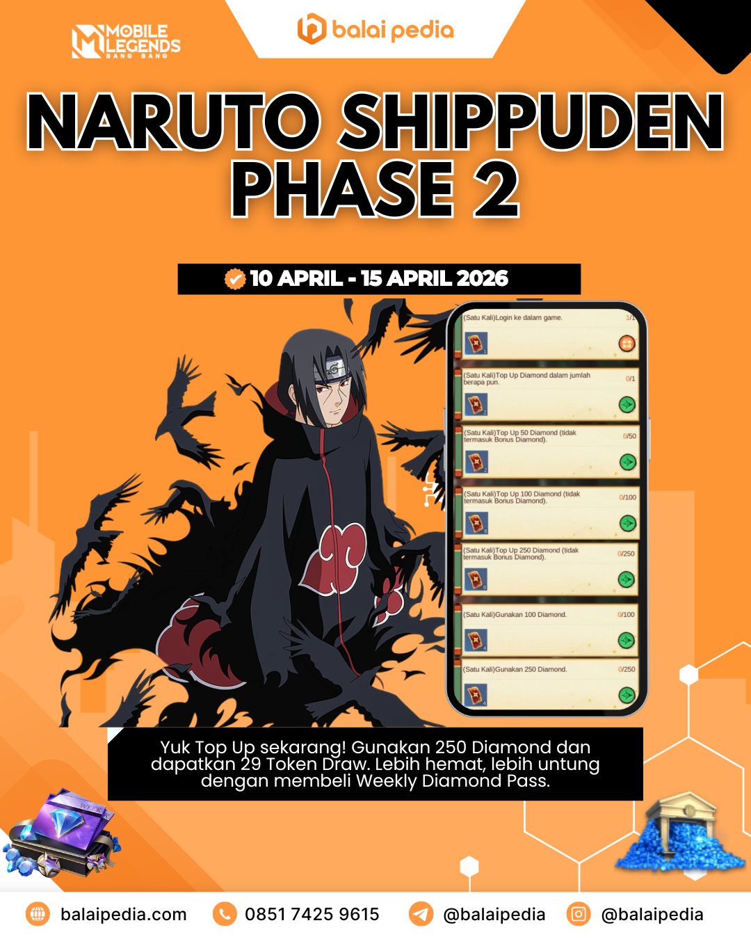 Bonus Top up Phase 2 Sudah Hadir Top up dan gunakan diamond sebanyak 250 bisa mendapatkan total 29 token draw, lebih hemat beli weekly diamond pass.